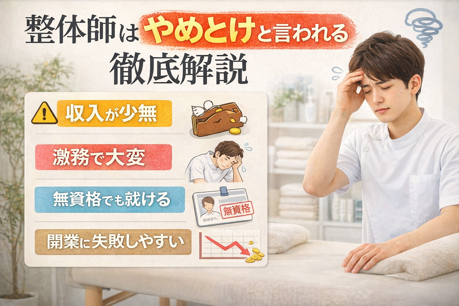 整体師はやめとけと言われる7つの本当の理由|収入不安定・肉体負担・労働環境のリアルデータ